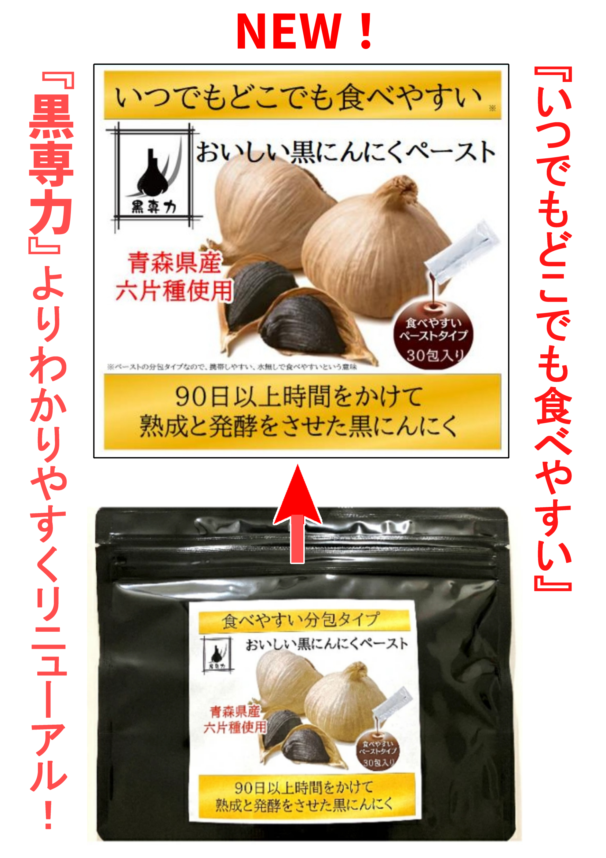 『おいしい黒にんにくペースト150g(5g×30包)』のパッケージがリニューアルされました