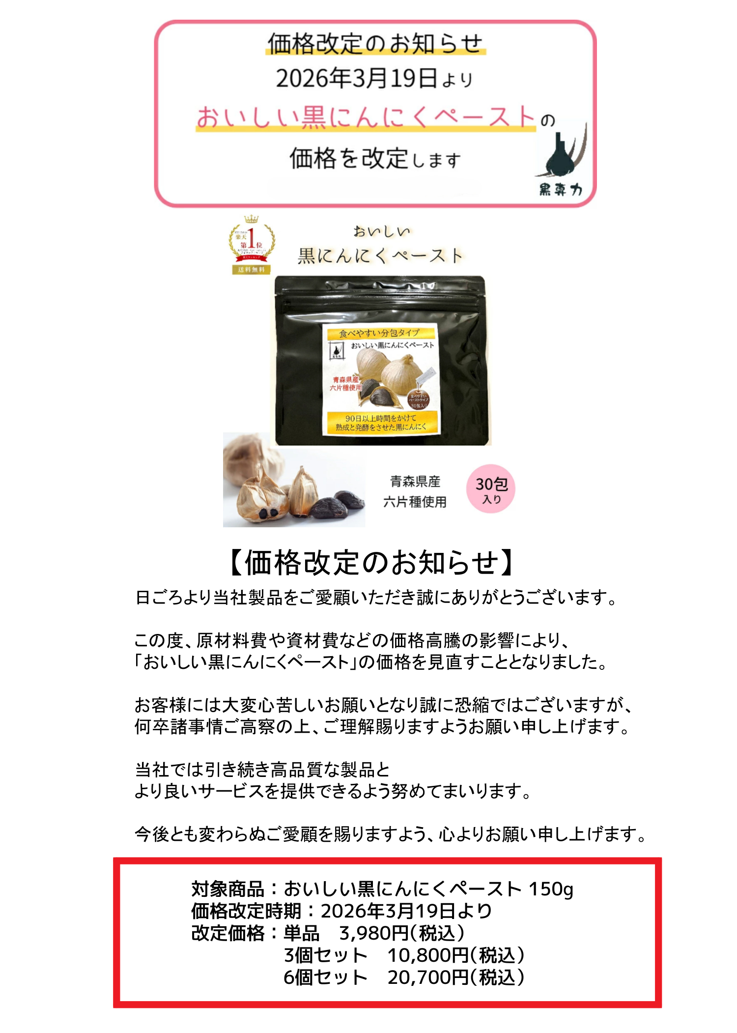 『黒にんにくペースト7包入り』 新発売!